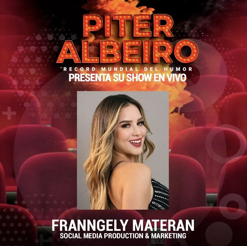 La destacada creadora de contenido y especialista en marketing digital Franngely Materán, ha sido oficialmente invitada a participar como colaboradora en el nuevo espectáculo en vivo del reconocido comediante y empresario Piter Albeiro, titulado “World Record of Humor”, que se llevará a cabo el viernes 24 de octubre de 2025 a las 8:00 p.m. en el Teatro Calima de Cali, Colombia.